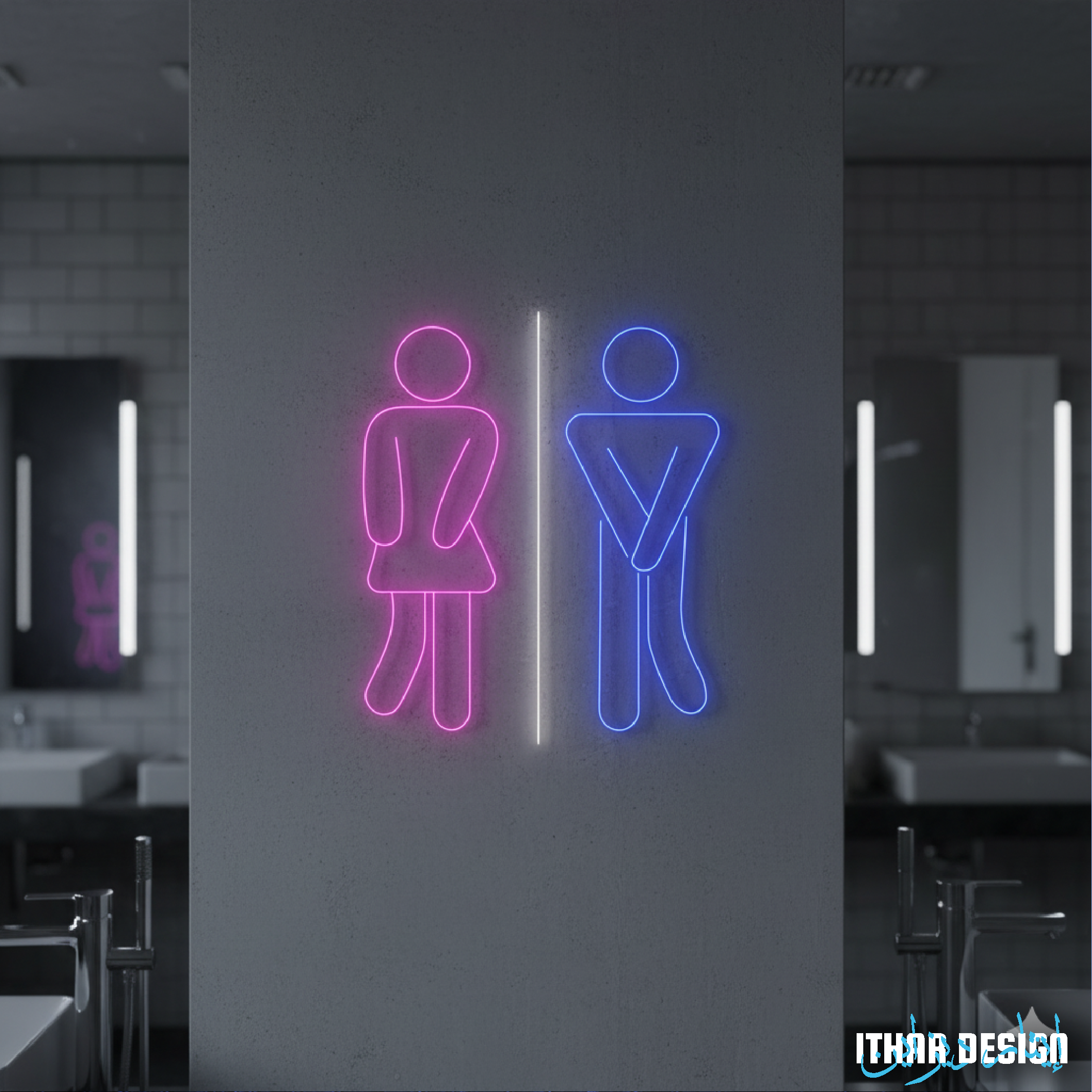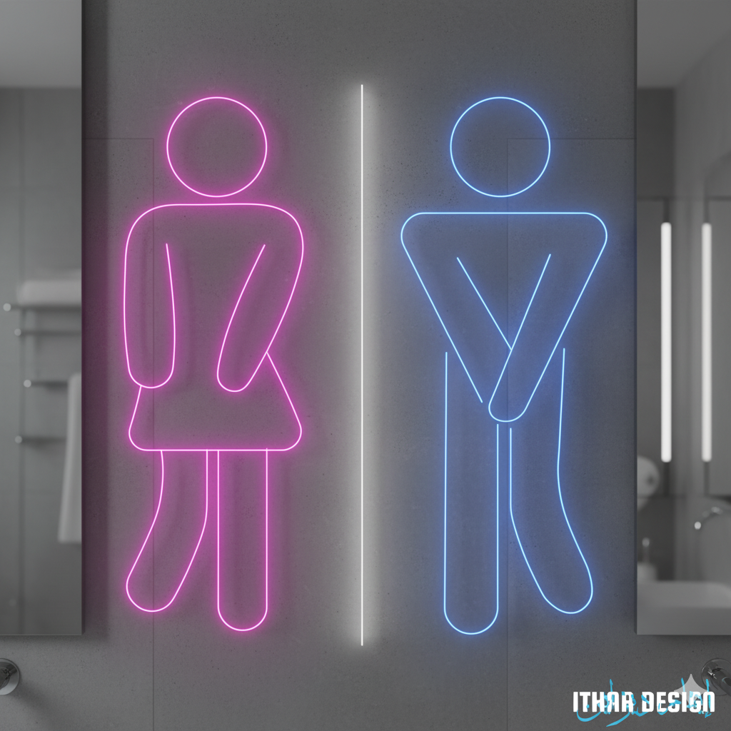 Stylish LED neon sign for men’s and women’s restrooms. Ideal for cafés, restaurants, gyms, offices, and events. Designed by Ithar Design (Morocco) with easy installation.