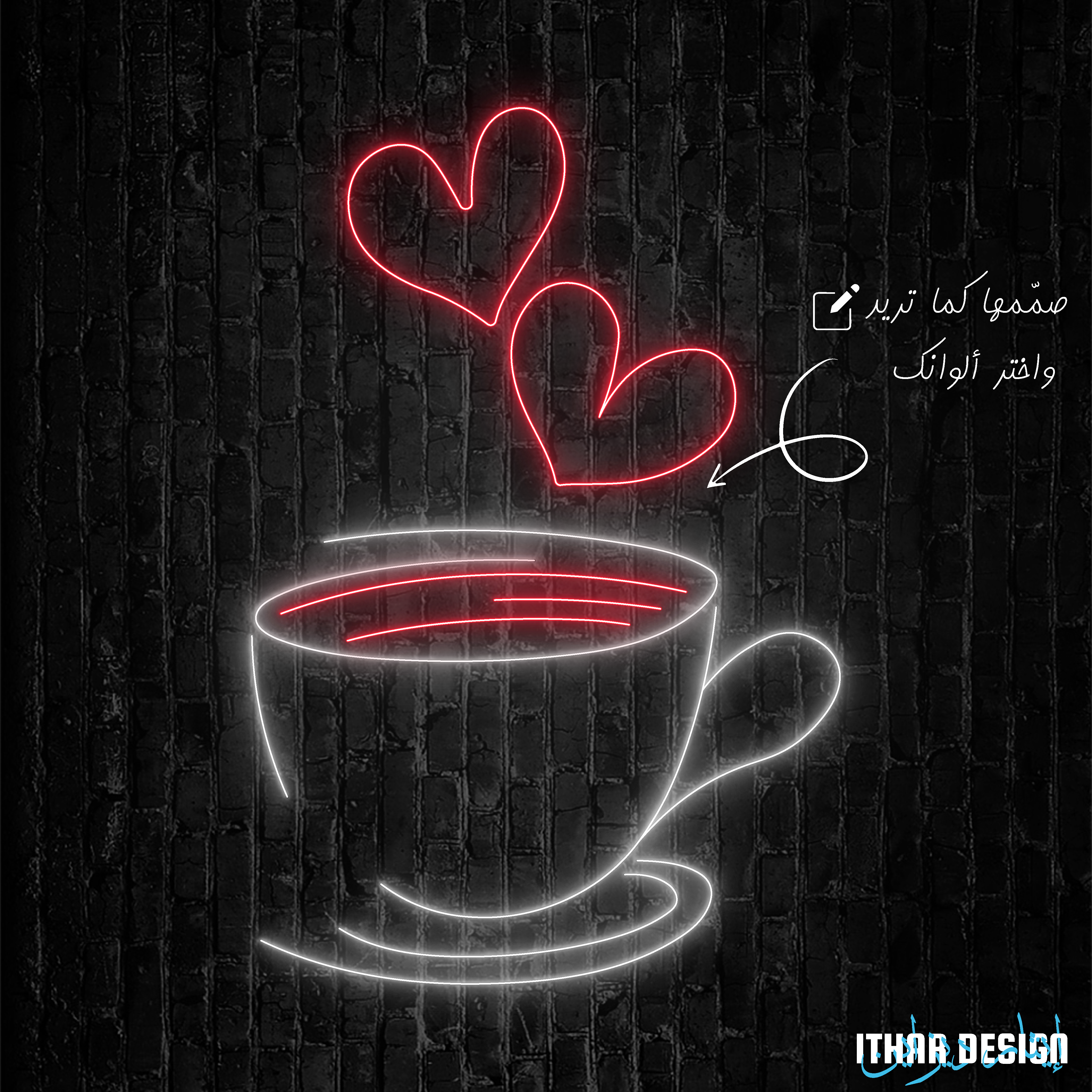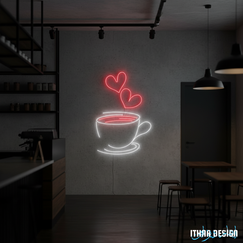 custom LED neon sign, coffee shop neon, café neon light, heart neon sign, home decor neon, personalized neon Morocco, wall neon light, coffee neon sign Casablanca, restaurant neon Marrakech, LED sign Rabat, neon art Morocco, cozy café light, illuminated wall sign, coffee décor neon