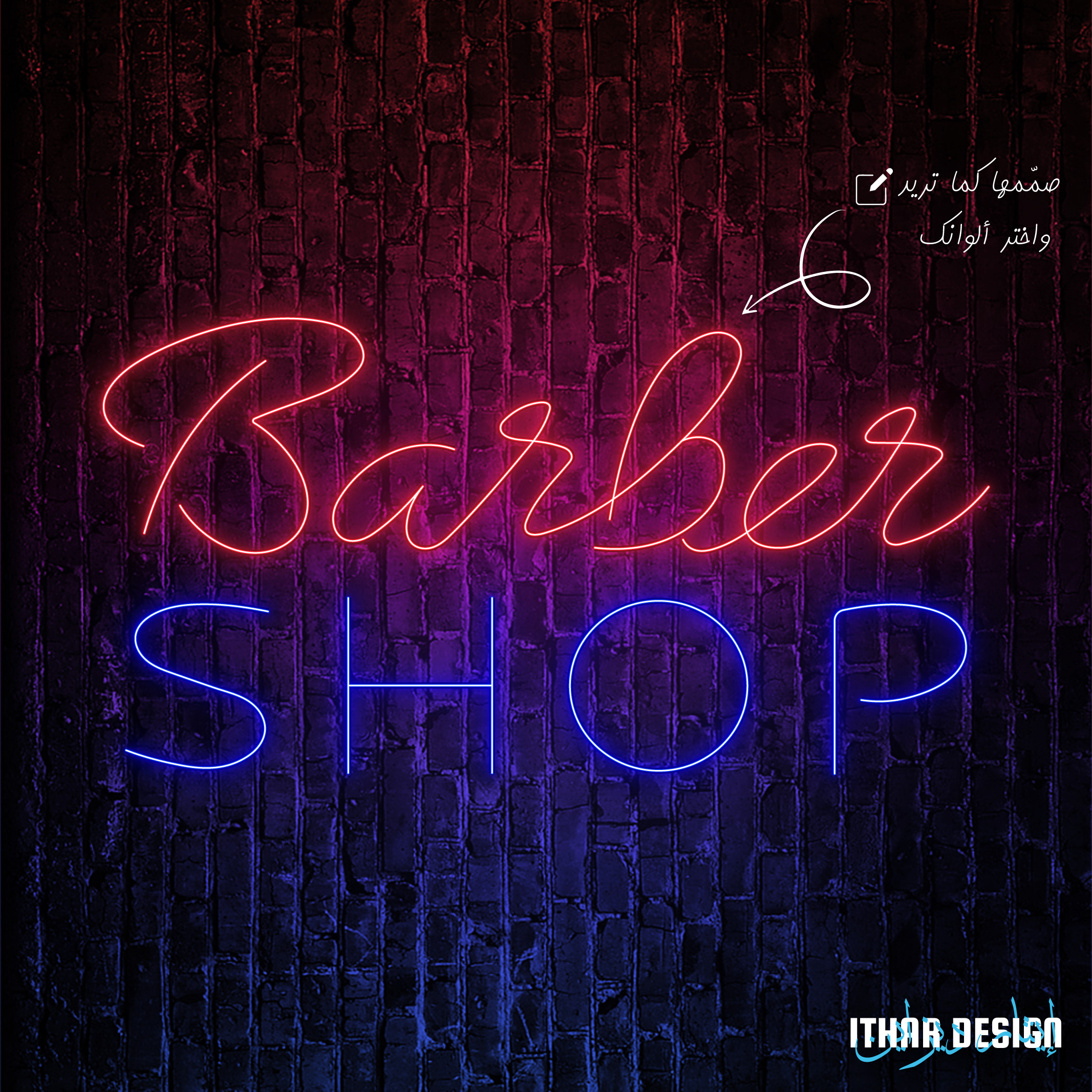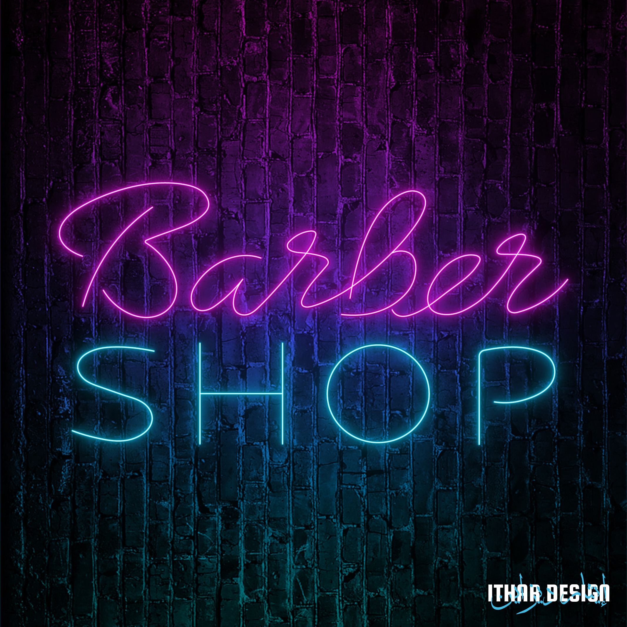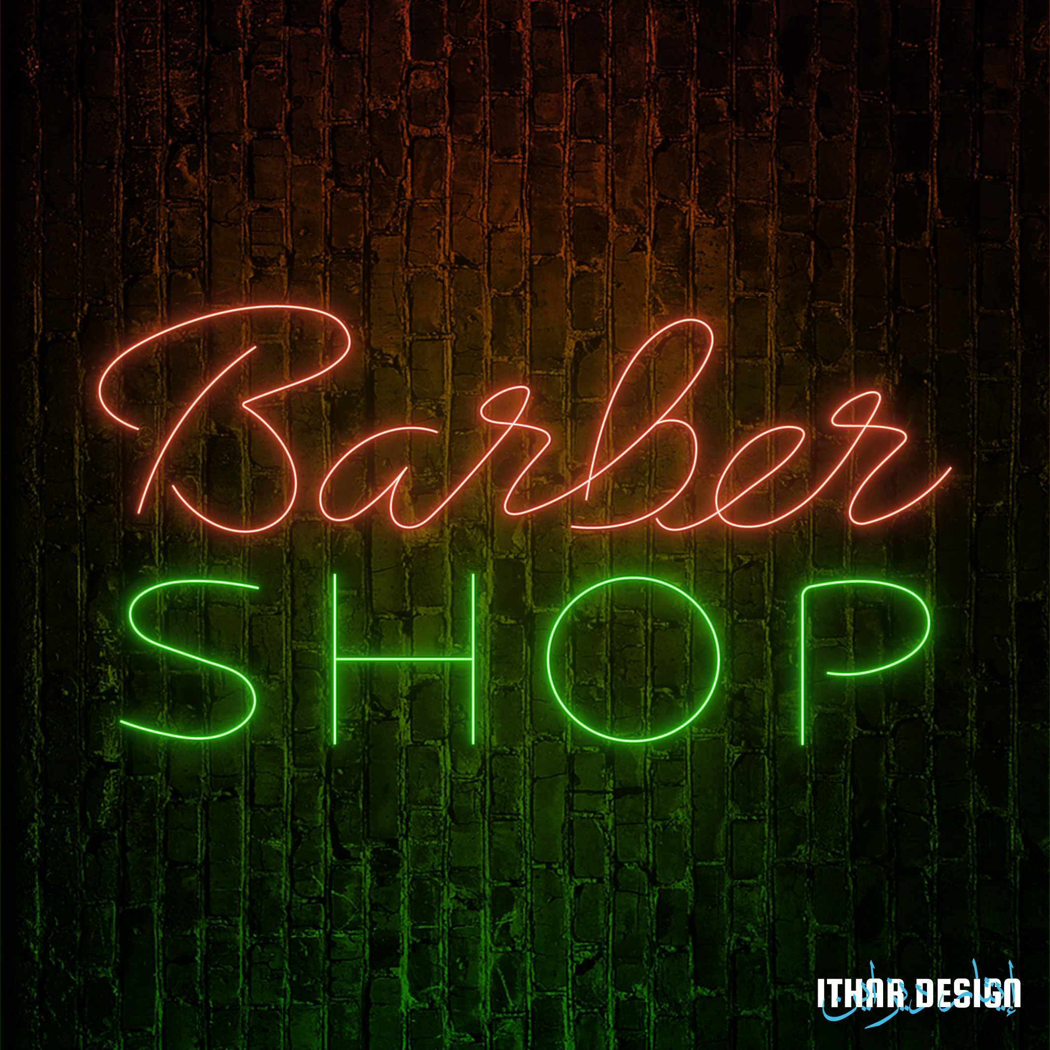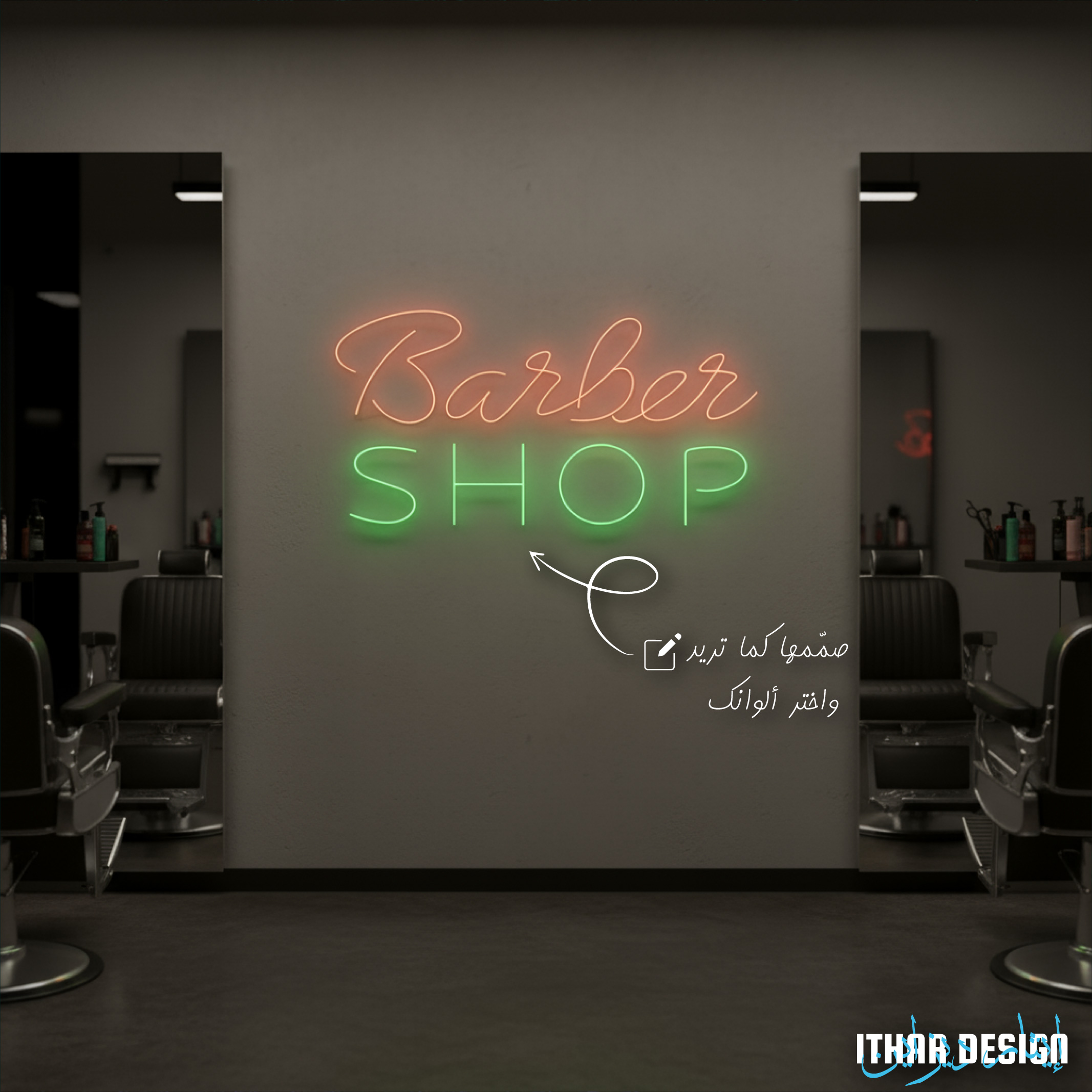 Personalized LED neon sign with “Barber Shop” design, ideal for attracting clients and adding style. Handcrafted by Ithar Design (Morocco) with premium quality for salons and shops.